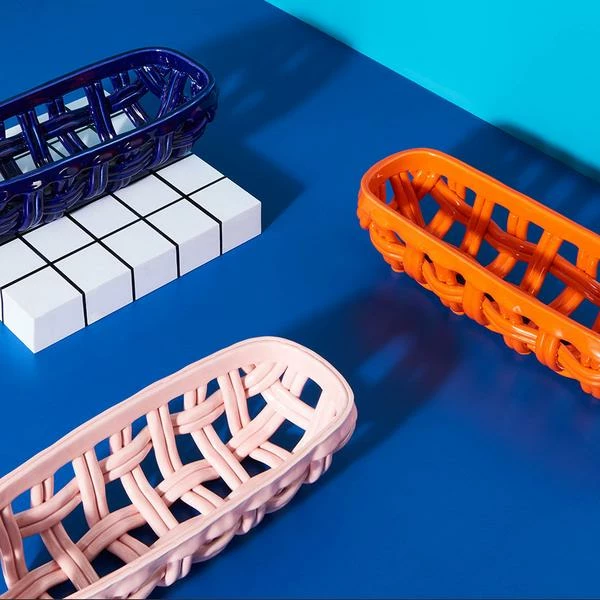 Designed for a baguette, but also suitable for fruit or other tasty things. Each stoneware baguette basket has irregular braids to create a unique look. Size 30.5 x 23 x 8.5 cm