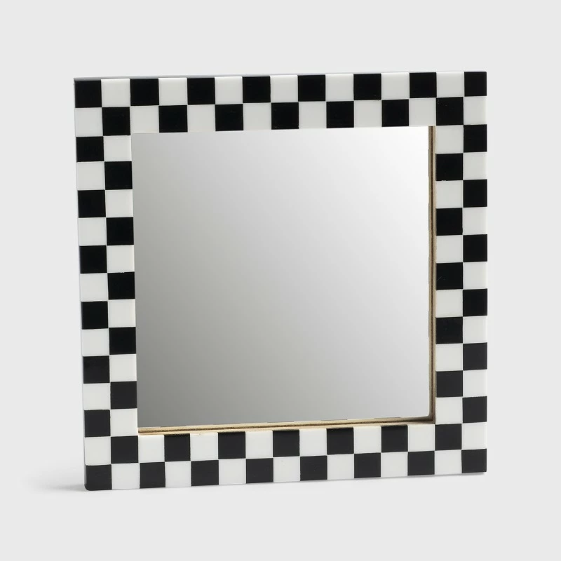 Ethnic patterns are the inspiration for this beautiful check mirror. Hang it by the door for your final check before leaving the house or use as a decorative item on a table or shelf.