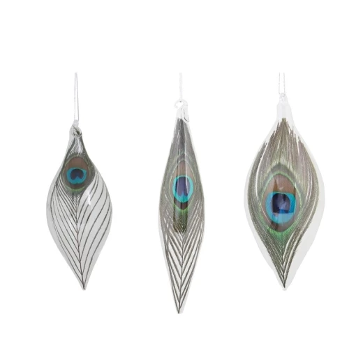 Set of 3 Christmas hanging peacock feather ornament