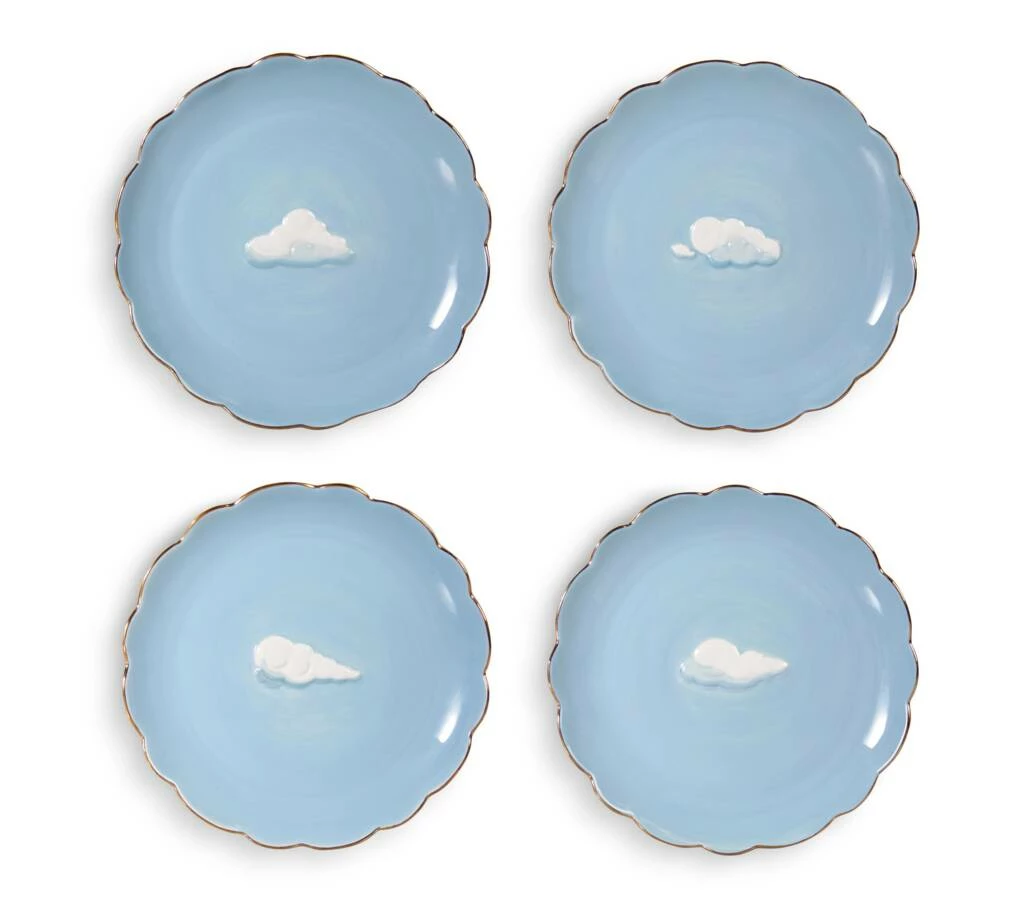 Cake will taste even better from these beautiful cloud design china plates. This set consists of four different clouds.