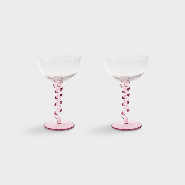 Coupe spiral pink set of 2 Article number: 344-03 Material: Glass Colour: Pink Size: 16 x Ø 11 cm Product informationEat your favourite dessert in these spiral coupes! They are perfect for delicious ice cream and looks great on any table due to the bright solid pink colour and a twisted foot.