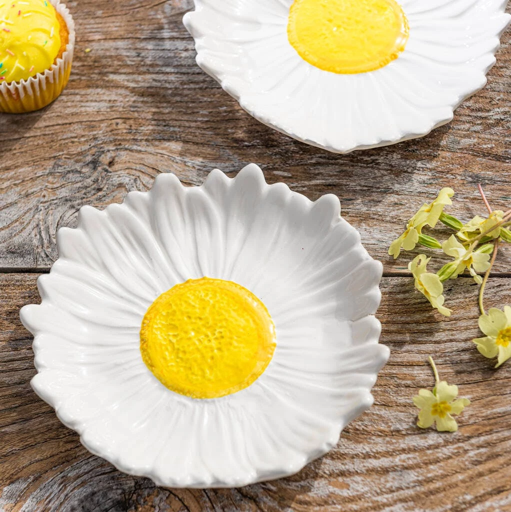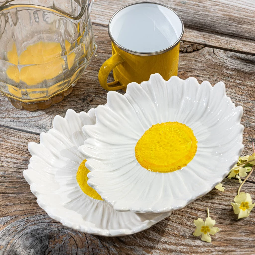 For a summer dinner in the garden or a picnic this shallow daisy bowl will complete any setting with its cheerful appearance.