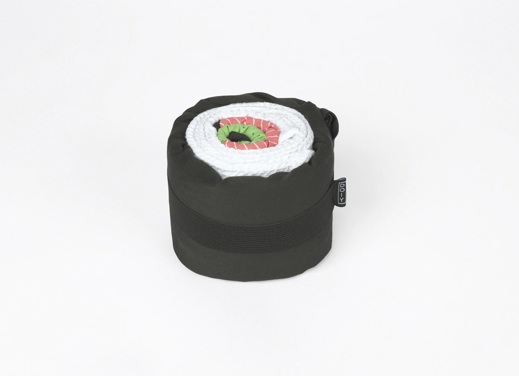 Kit de cuisine comprenant un tablier un torchon et une manique le tout en forme de maki. Proposé par la marque Doiy.