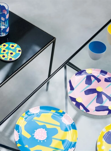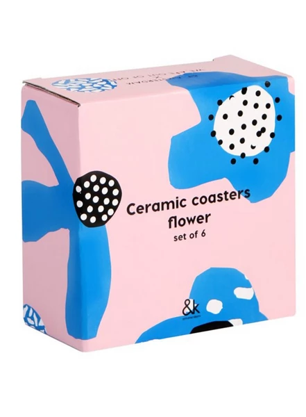 This summer &k asked Dutch graphic design duo WAOOO to create a daring and contrasting floral print for a cheerful line of summer items in and around home. Brighten up your table with our ceramic coasters. Use for cleaning a damp cloth. The coasters will be delivered in a gift box. Material: Ceramic, cork Colour: Multicolour Size: Ø 10 cm