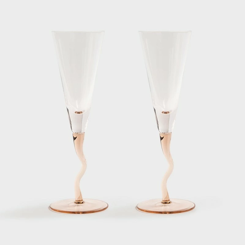 Celebrate a special moment with these curly flutes! They are perfect for sparkling champagne and look amazing on any table because of the soft solid pink colour and subtle shape.