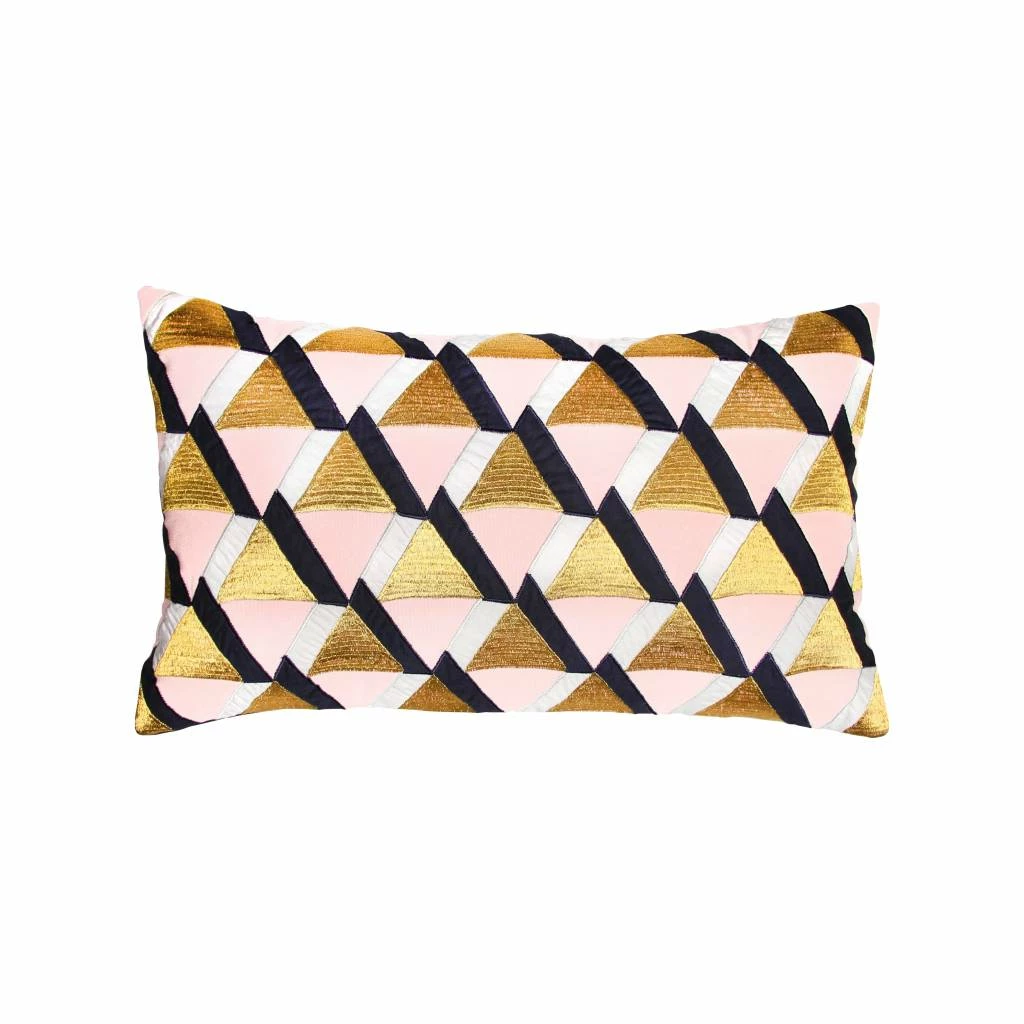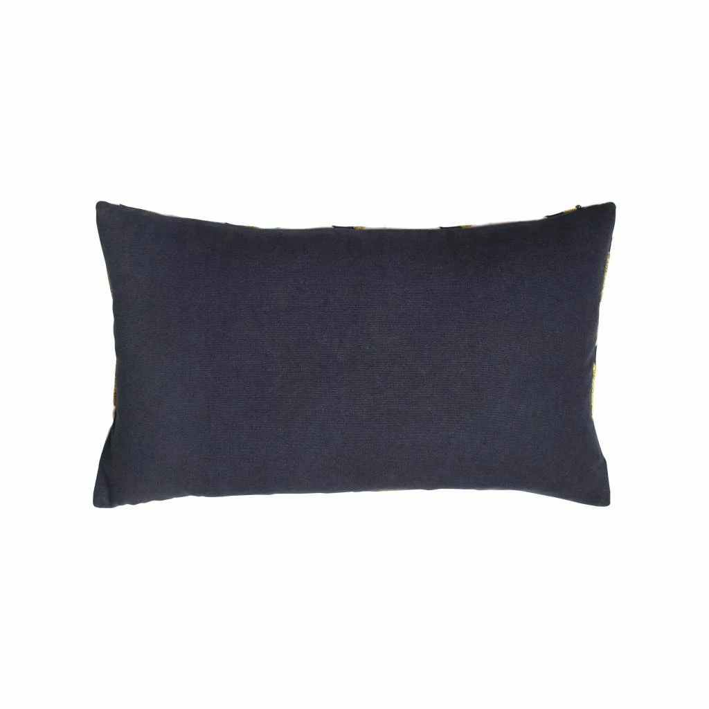 Handmade decorative cushion in Gold/Blue and Rose patterned color palette. Backside in plain darkblue. Adds glamour to any room. The lurex yarn gives the pillow a luxurious look. 100% feather inner cushion included.
