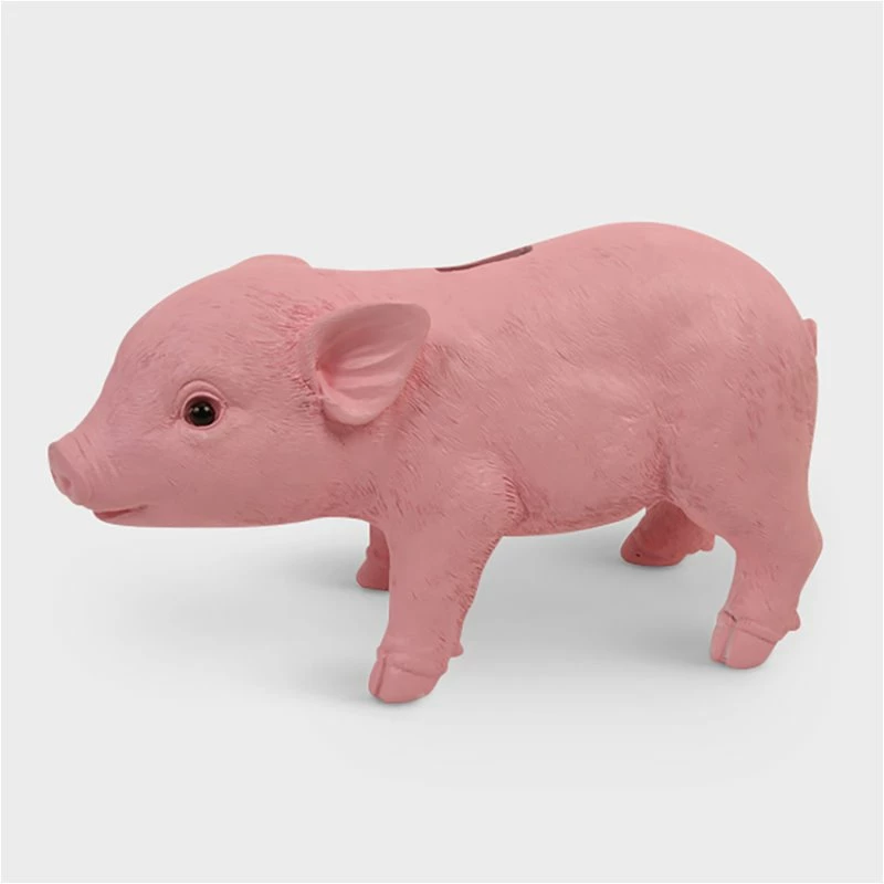 Esta hucha en forma de cerdo rosa se puede abrir y cerrar por el vientre y se ve bien genial como decoración.