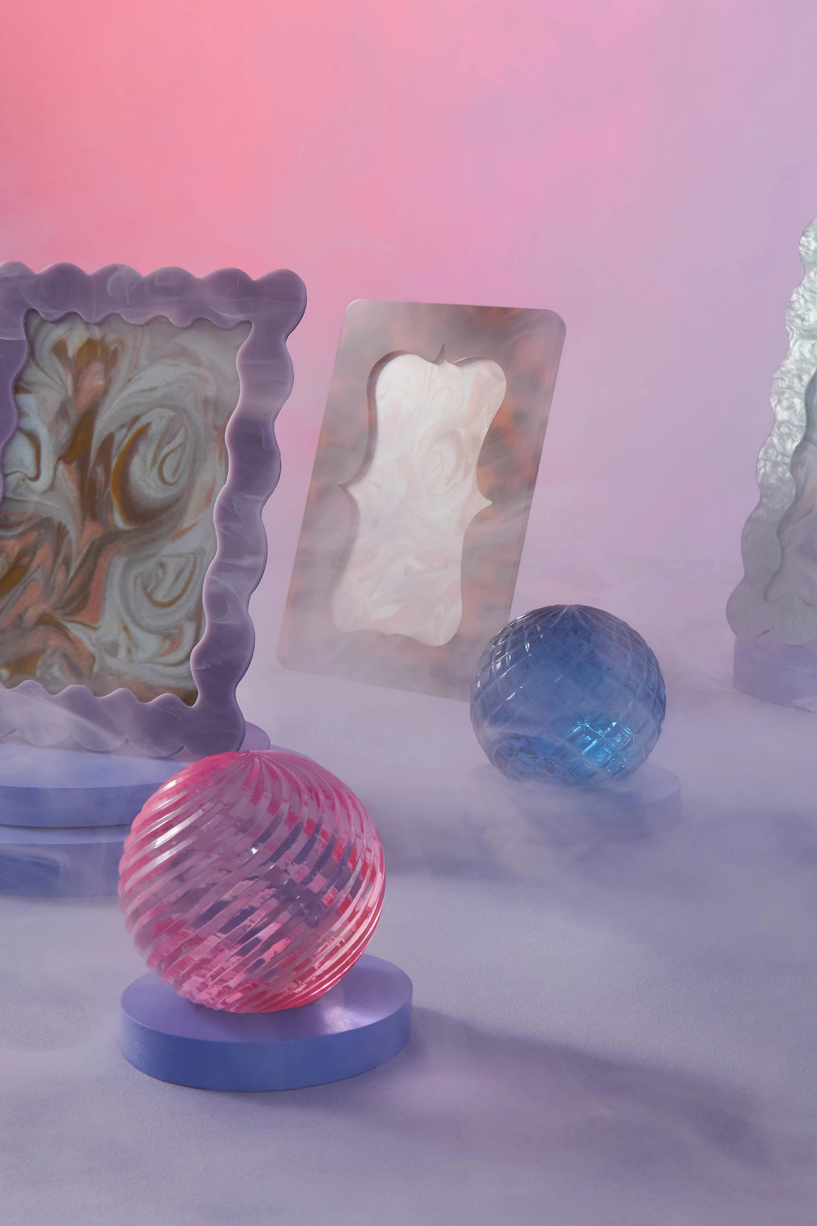 Glass sphere shaped paperweight Great for keeping all your papers together Use for display on your coffee table or shelf Material: glass Size: 9cm x 9cm x 7cm
