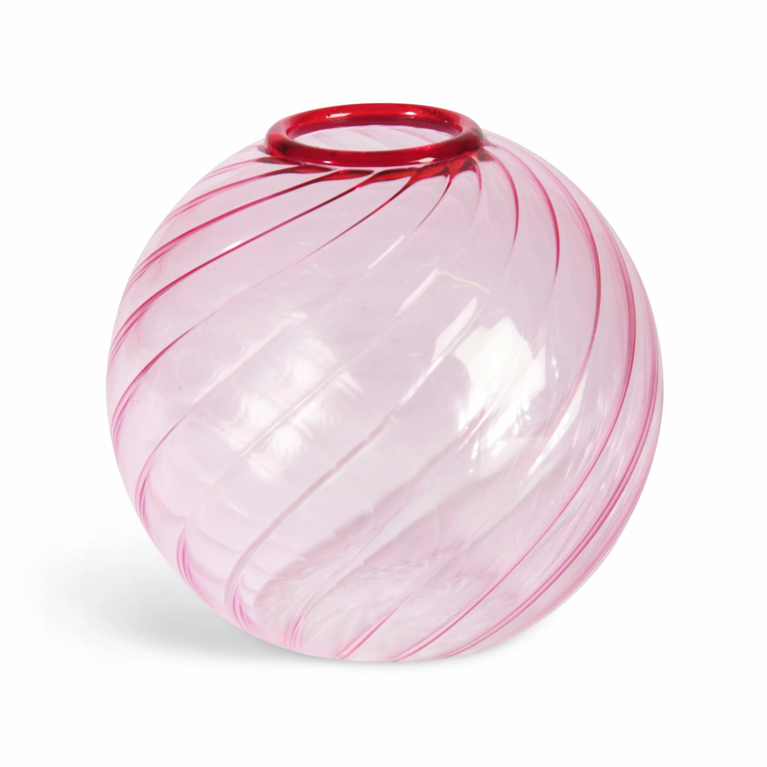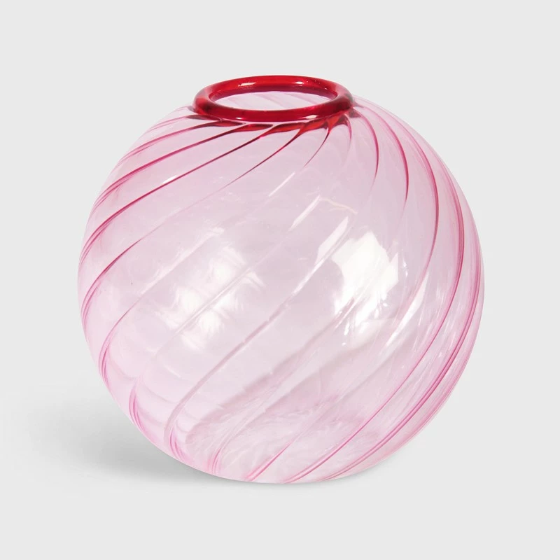 This gorgeous glass bud vase adds a splash of colour to your interiors. Soft and striking, the spiral design and light glass catches light and bounces light around the room. The deep coloured rim ombre into a soft pink colour to add tone and texture. Add water and a bud from the garden for extra romanticism.This fun vase is inspired by marbles. It’s created for little flowers and will induce a smile.