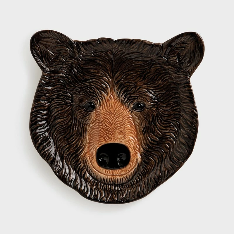 Plato decorativo de cabeza de oso, pintado a mano.