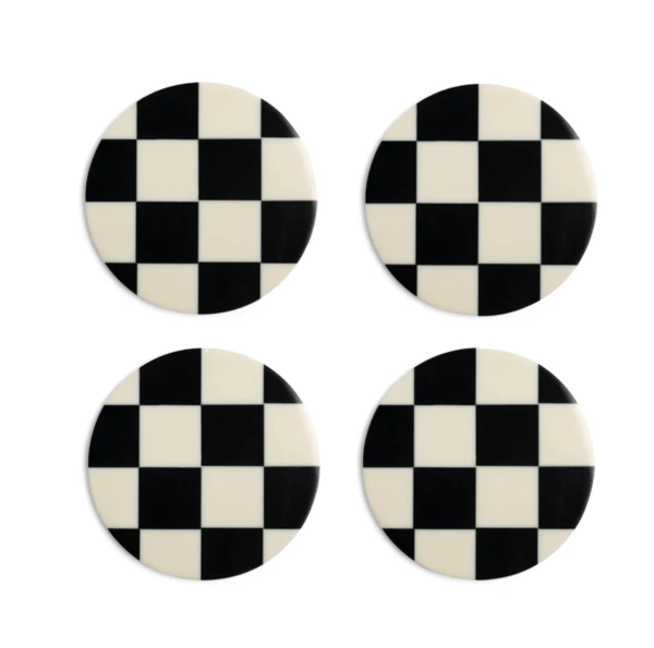 Set de 4 posavasos con estampado de tablero de ajedrez, para darte un toque divertido a las bebidas y proteger de paso las superficies. Disponible en 3 colores. Poliresina. 0.5 x 10 cm. & klevering se fundó en 1992 en Amsterdam y, a lo largo de los años se ha convertido en un referente para los accesorios del hogar por su reconocible estilo que mezcla lo elegante con lo original, e intenta llevar buen humor y alegría a cualquier espacio. Además trabajan con nuevos diseñadores y artistas holandeses, para enseñar su trabajo más allá de sus fronteras.