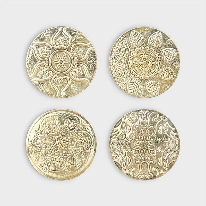 Set de 4 posavasos hechos a mano con estampados floreados.