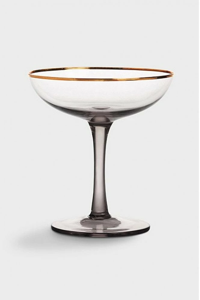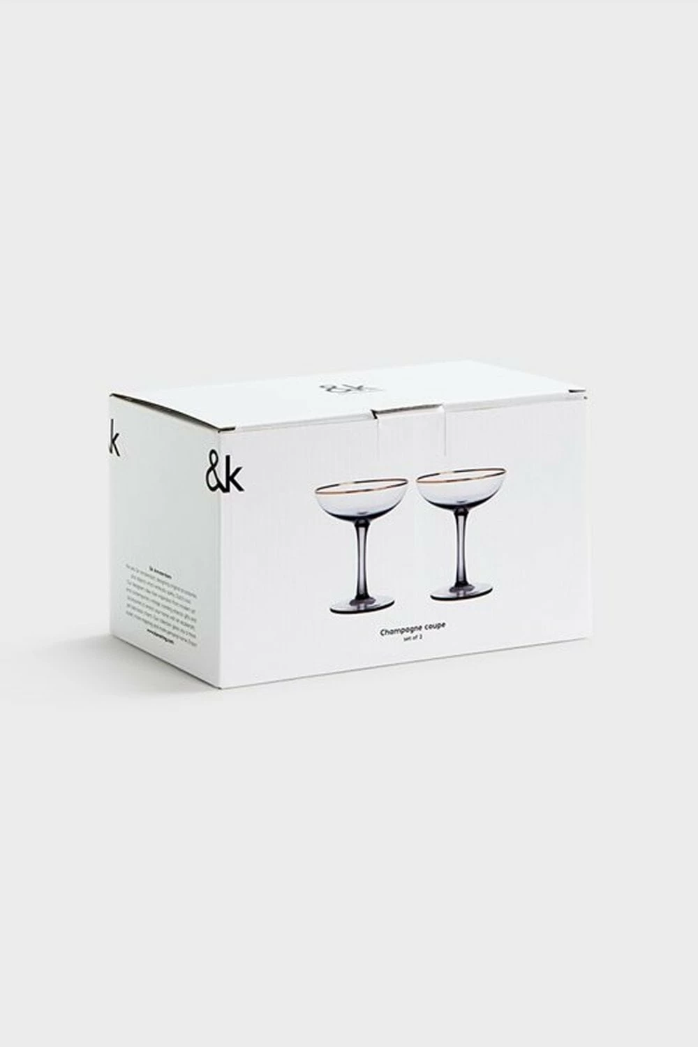 &Klevering Smoke Gold Detail Champagne Coupe Set of 2 Not Dishwasher Safe Delicate Glass 40833