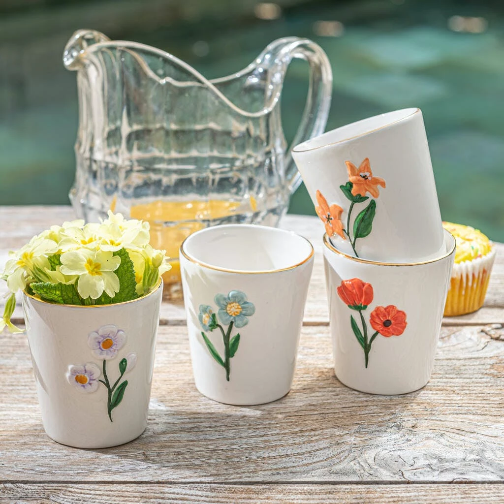 This set of four Porcelain Gold Rimmed delicate wild Flower Tumblers are hand painted making each set individual to you.