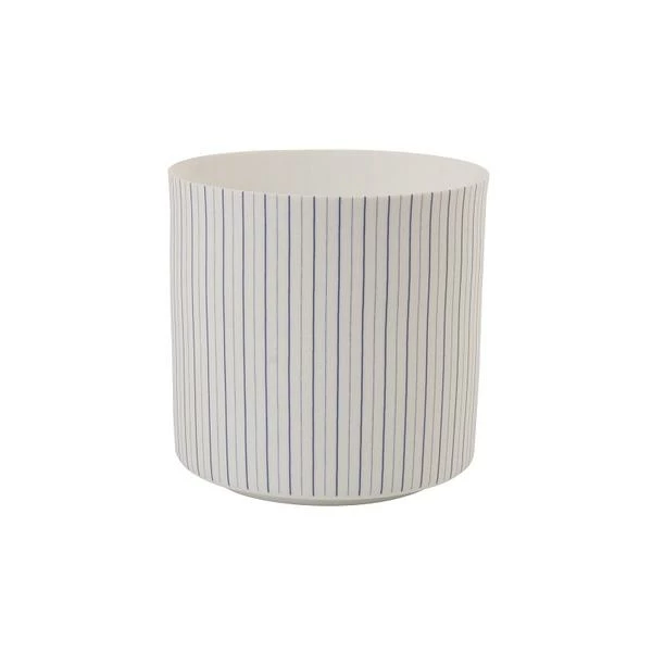 Fill your room warmly with this stylish tealight holder. Made of porcelain and with a delicate stripes graphic design. To clean, wipe with a damp cloth. // Material: Porcelain // Design colour: Blue // Diameter measures 9cm // Height 9cm
