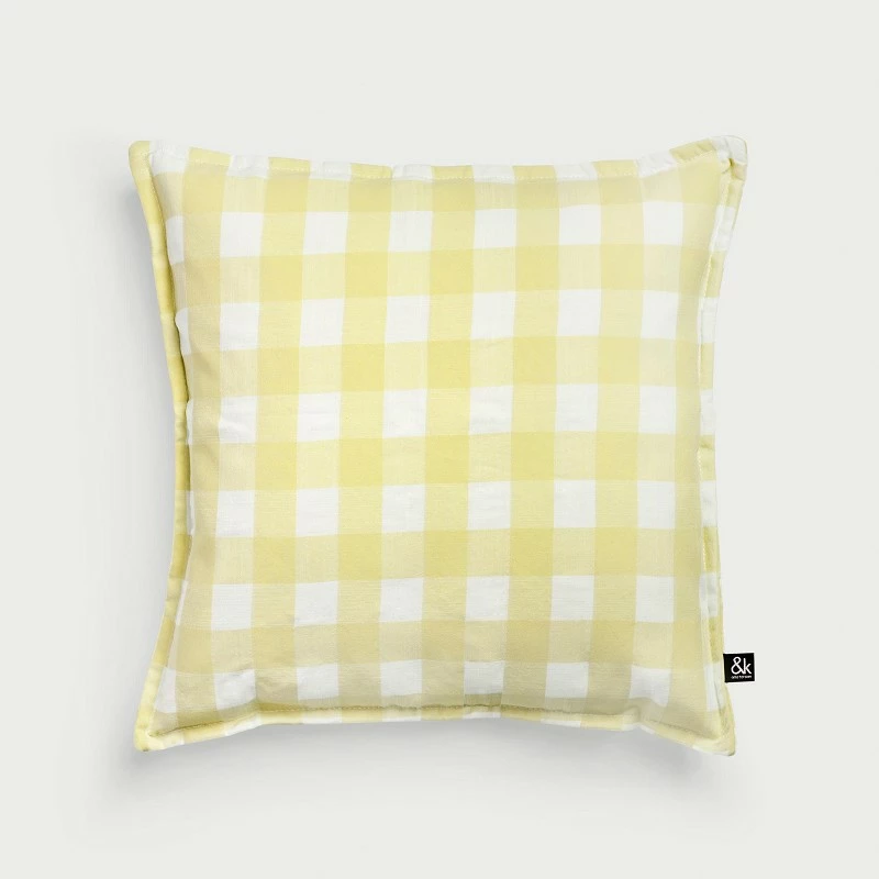 Square gingham cushion in a yellow colour way. Featuring 4 button fastenings on the back adding a beautiful finishing touch.